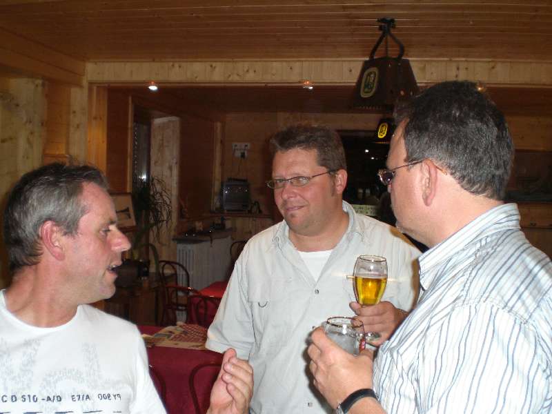 De niet-chapeau-ers babbelen gezellig na aan den toog.
