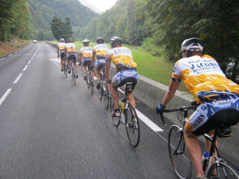 De Nissorap-Express is op weg naar de voet van de Cirque de Troumouse in Luz-Saint-Sauveur. Je zou het niet zeggen maar ook hier steeg de weg al enkele procenten.