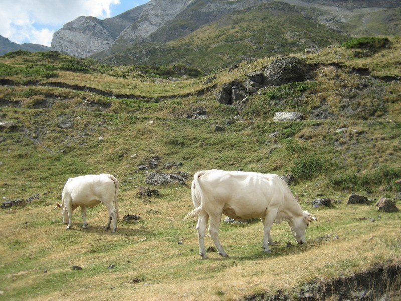 Zoals op zovele cols in de Pyreneeën loopt het vee ook op de flanken van de Cirque de Troumouse vrij rond. Van verkeersdrukte hoeven ze zich in elk geval niet veel aan te trekken.