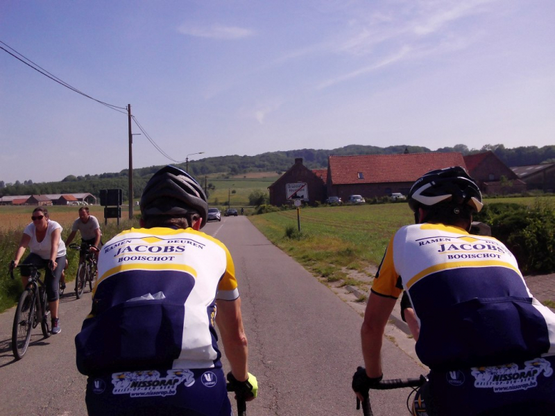 Na Dranouter doemt de helling van de Kemmelberg eindelijk op, en gaat de beklimming beginnen.