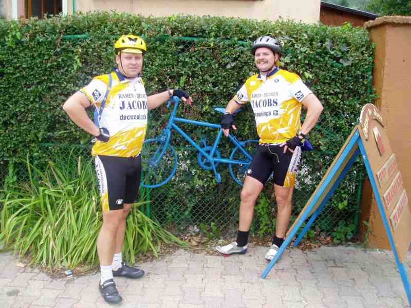 Wimmeke en Hans poseren bij een vooroorlogs model van een streekeigen veloke. Suggestion du chef !